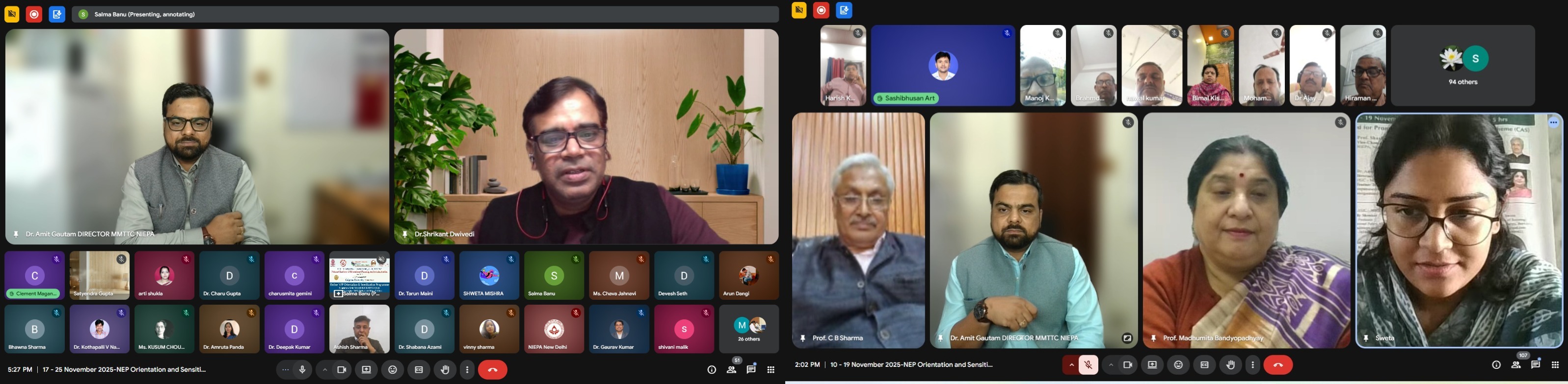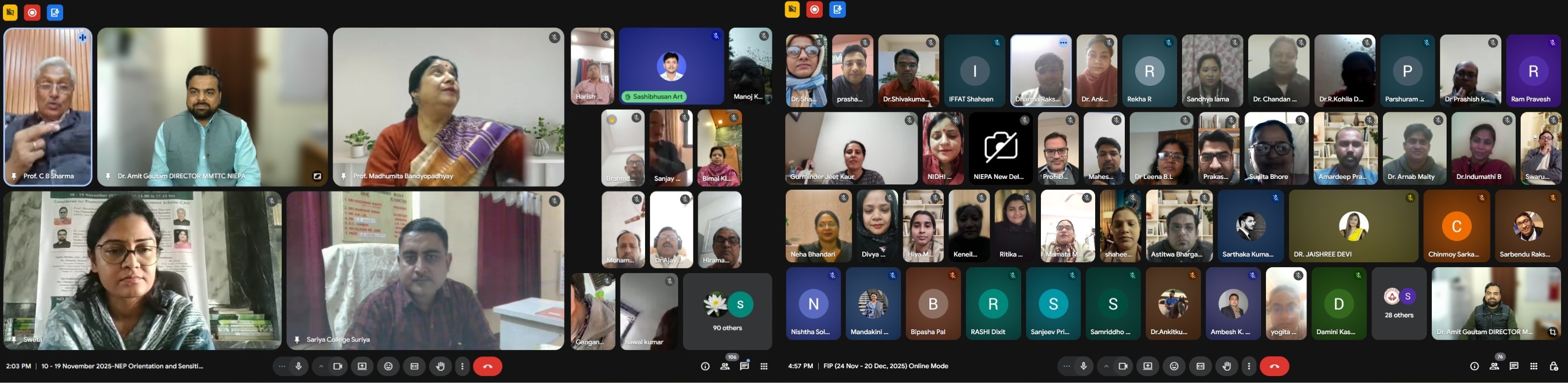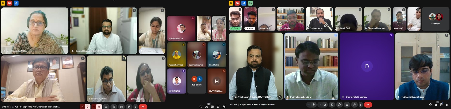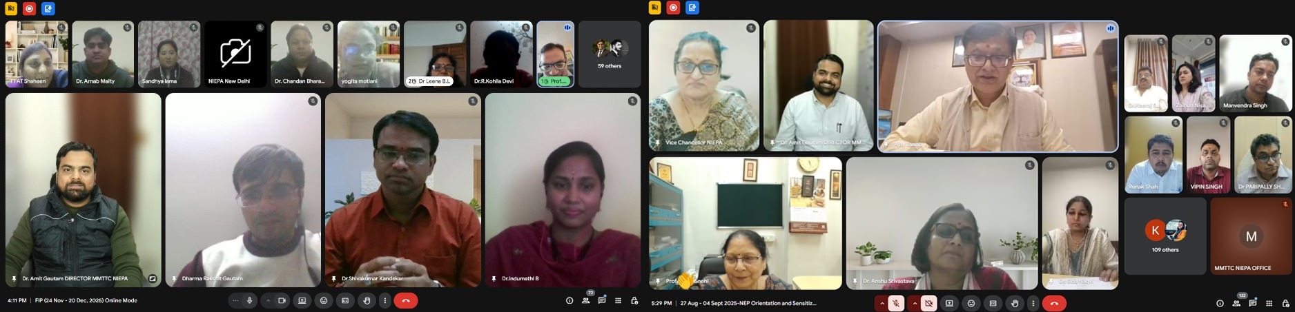 | 1. | NEP - Orientation and Sensitization Programme MMTTC_NIEPA (MMC-018-2026-MAR-A-07189)(Registrations Open) in collaboration with Mahatma Gandhi Central University, Motihari, Bihar (Last date of registration 08 March 2026 at 05:00 PM) |
