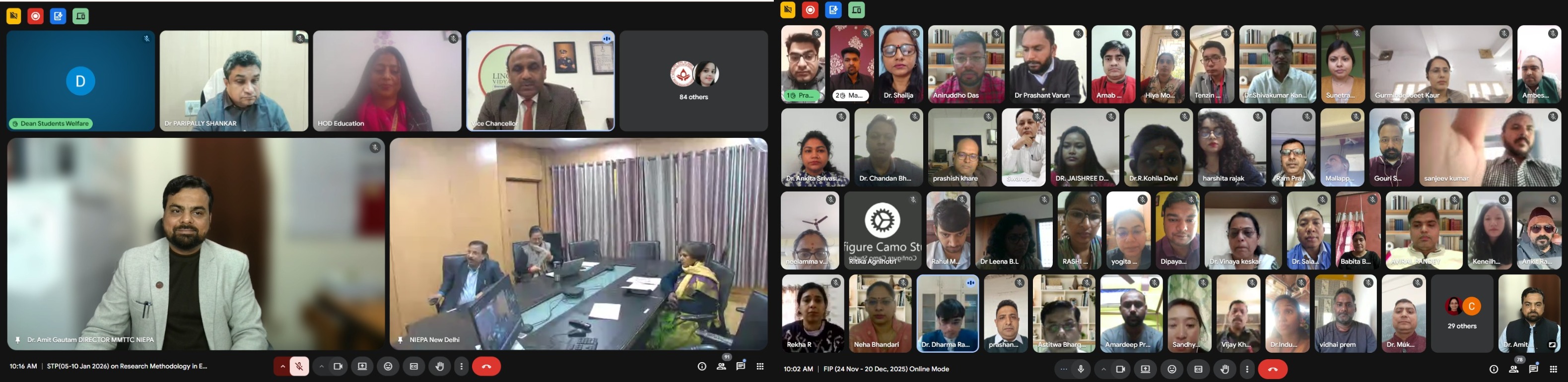 | 5. | Short Term Programme (STP) MMTTC_NIEPA (Registrations Open) Title : Reimagining the Future of MOOC Creation through the Integration of Artificial Intelligence (Last date of registration 18 January 2026 at 05:00 PM) |